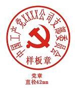 黨章:黨章應為標準圓形,印章尺寸:42X42mm,圓邊寬2mm。黨章圖案中央刊鐮刀、斧頭、鐮刀,斧頭的外圍刻黨組織名稱,自左而右環(huán)行,黨章的標準字體為簡化的宋體