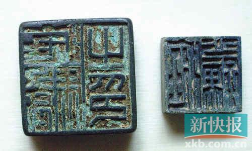 ■湖北襄樊市出土的西漢青銅印章。