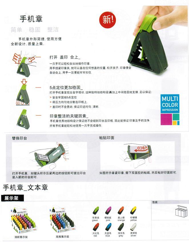 手機(jī)式便攜章還有活字自配型供您選擇。您可根據(jù)需要自己在文本印版上排版或改變文本內(nèi)容。