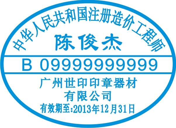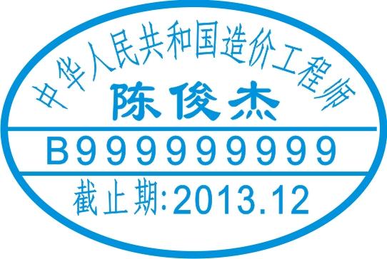 造價工程師章為橢圓形,尺寸:50X35mm,藍色印章,上方為:中華人民共和國注冊造價工程師,中間為注冊號,下方為注冊有效期,新版的還在注冊號和有效期之間加入了注冊單位。