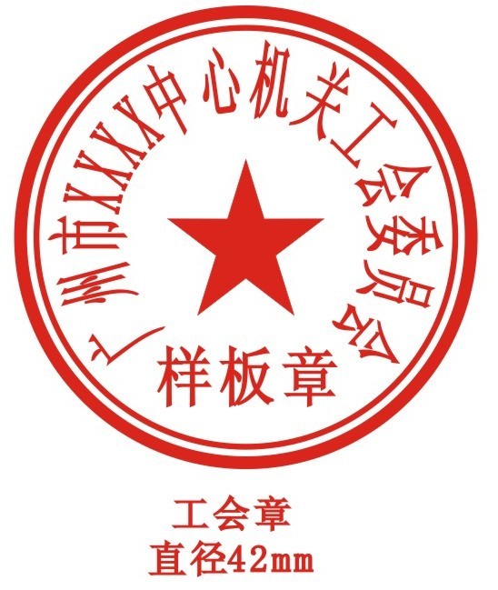 三、中華全國總工會的印章,直徑5公分,邊寬0.15公分,五角星直徑2公分。各省、自治區(qū)、直轄市總工會及全國產(chǎn)業(yè)工會、全總部委辦一級組織的印章,直徑4.6公分,邊寬0.12公分,五角星直徑1.8公分。其他各級工會組織,及工會組織所屬的部門、企事業(yè)單位的印章,直徑均為4.2公分,邊寬0.12公分,五角星直徑1.6公分。